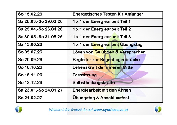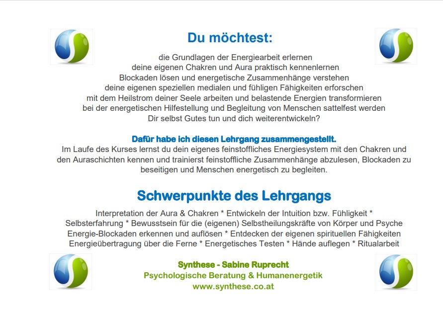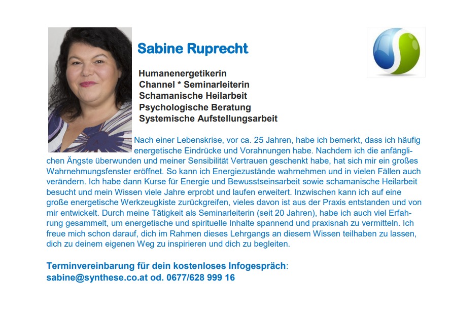 Info & Anmeldung: Sabine Ruprecht 0677/628 999 16 oder sabine@synthese.co.at.